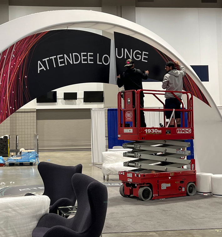 First stop was registration located right in front of the expo hall for easy access. Inside Expo we created lounges for people to rest and recharge in between the various exhibitor booths.
