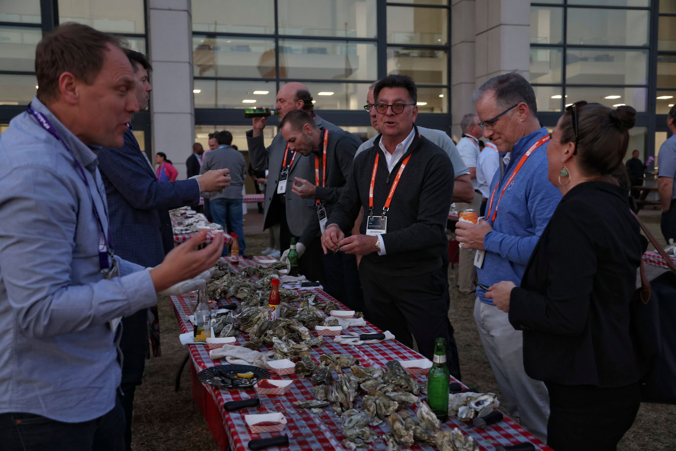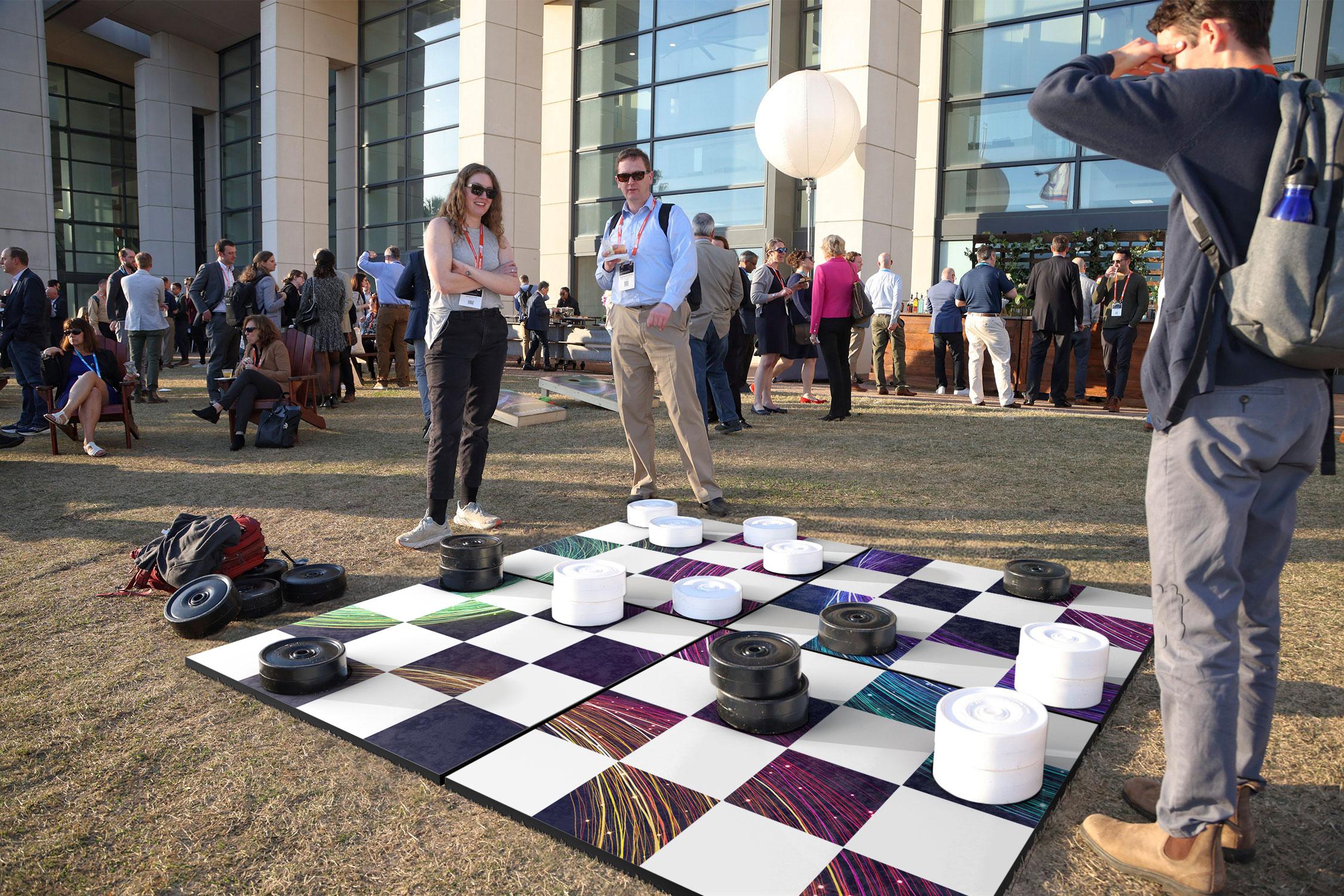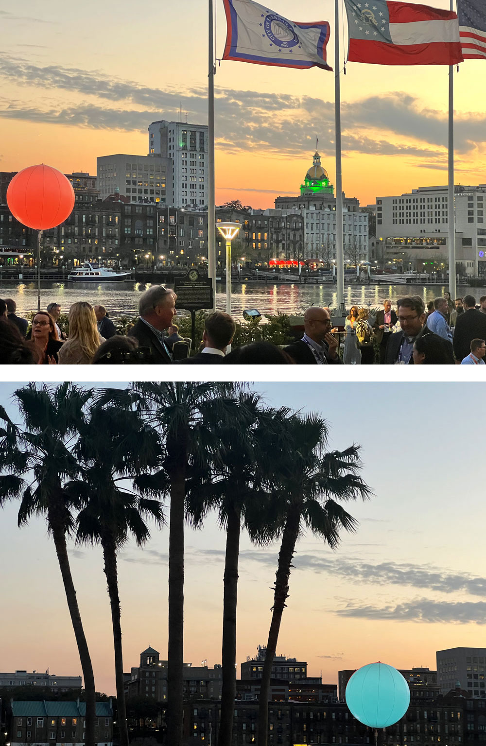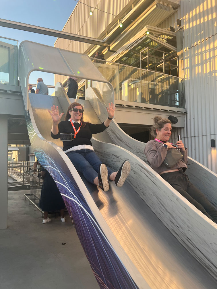 A convention just isn’t the same without a little fun. The opening reception was held in the expo hall. The second day featured an oyster bash and southern food complete with branded games. The closing party was held at a rooftop bar across the river. A slide transported people from the roof top to the level below.