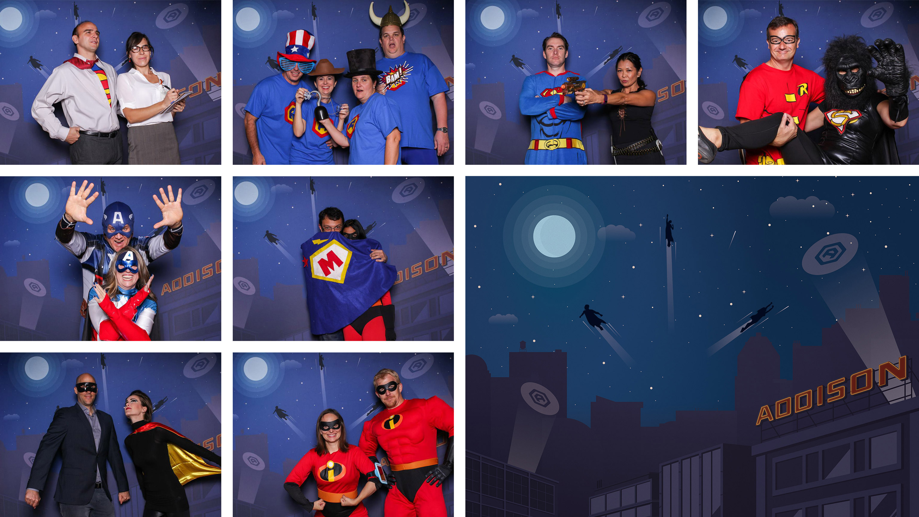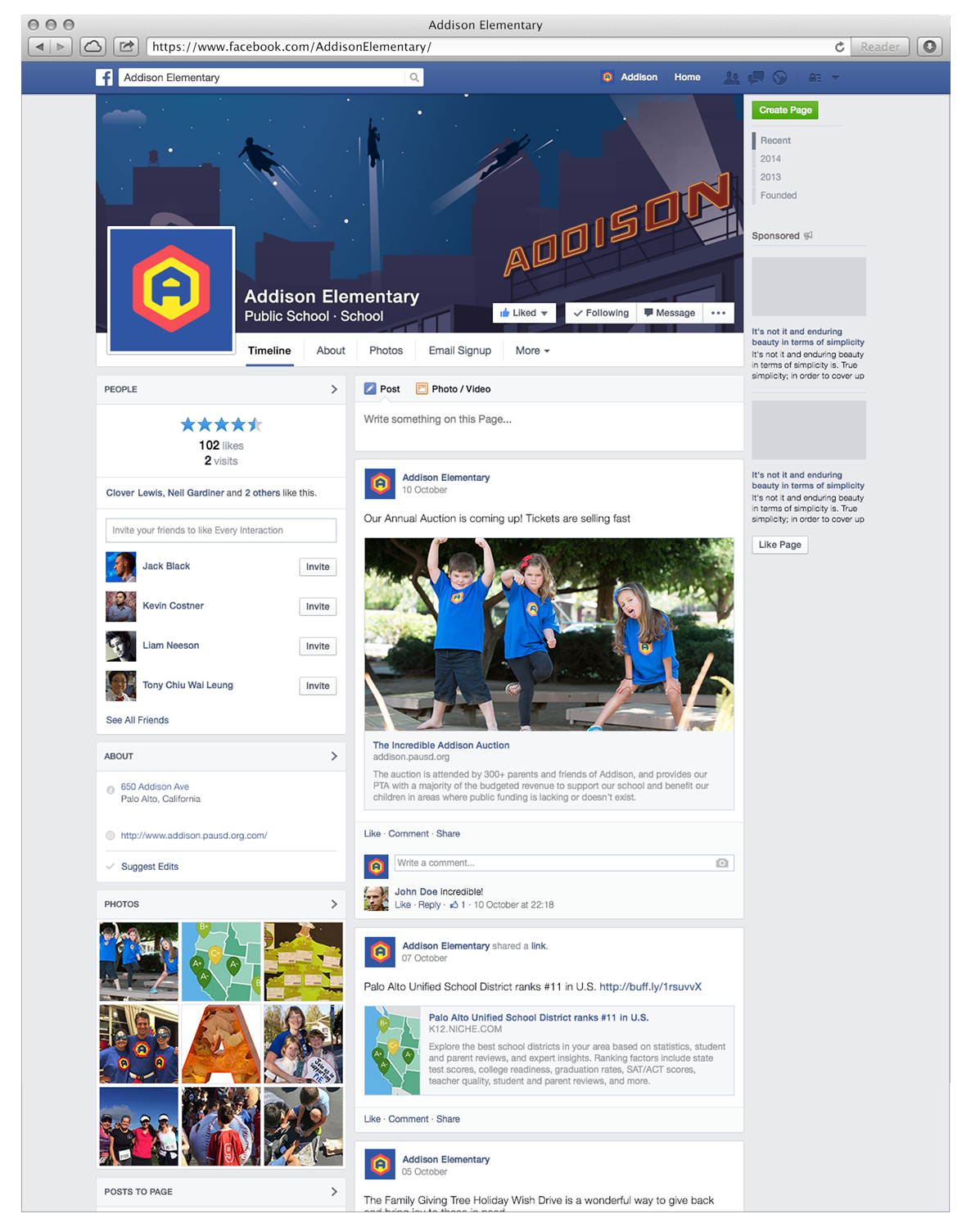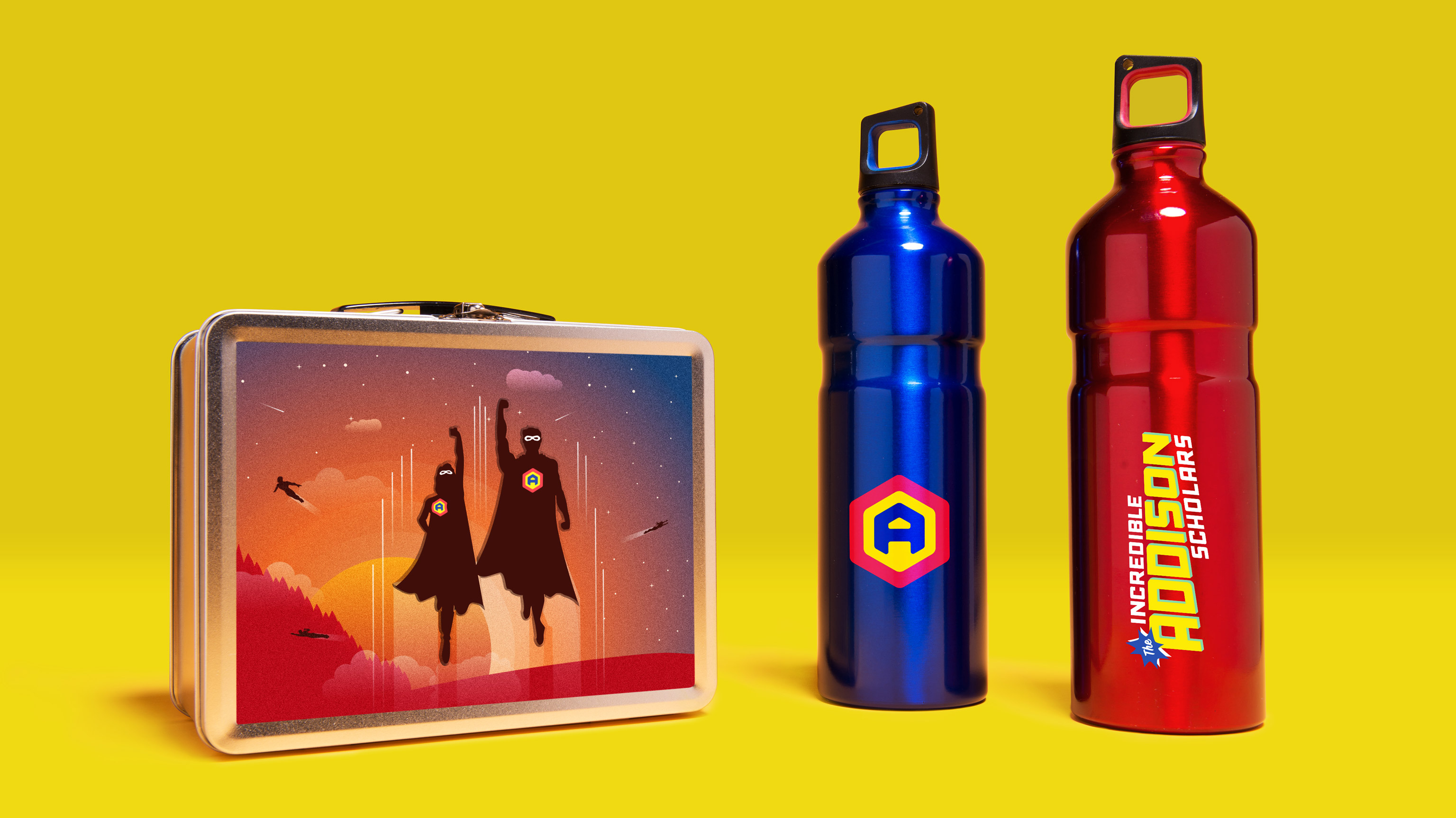 Based on a superhero theme, we created an identity for Addison Elementary School’s annual fundraising auction, our pay-it-forward project for this year. The bright primary colors and fresh design approach were just what was needed to achieve powerful participation for the incredible event. And then Whoosh! The logo design morphed into ever-more adventurous projects befitting our heroic agents of education.