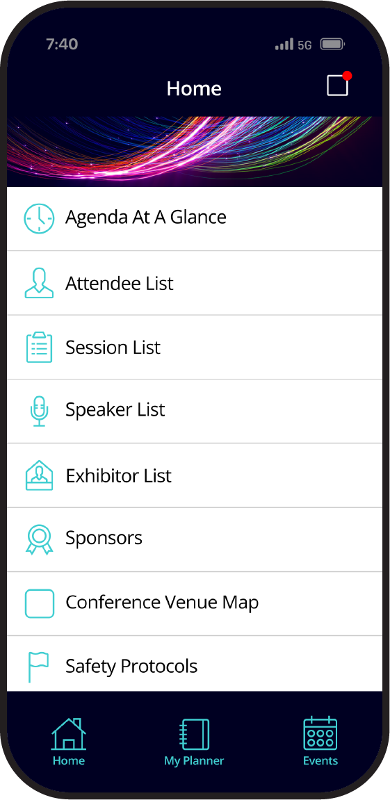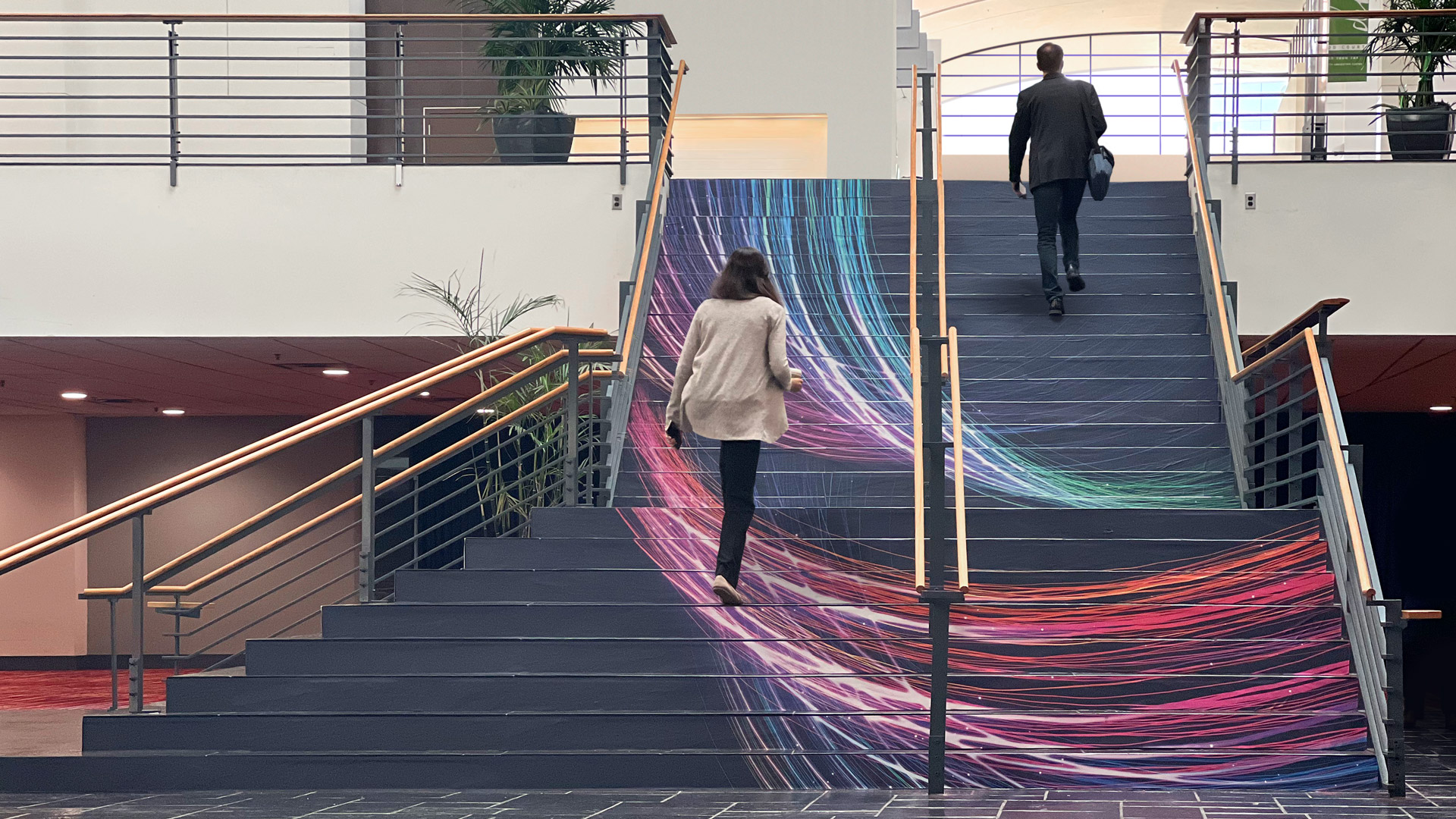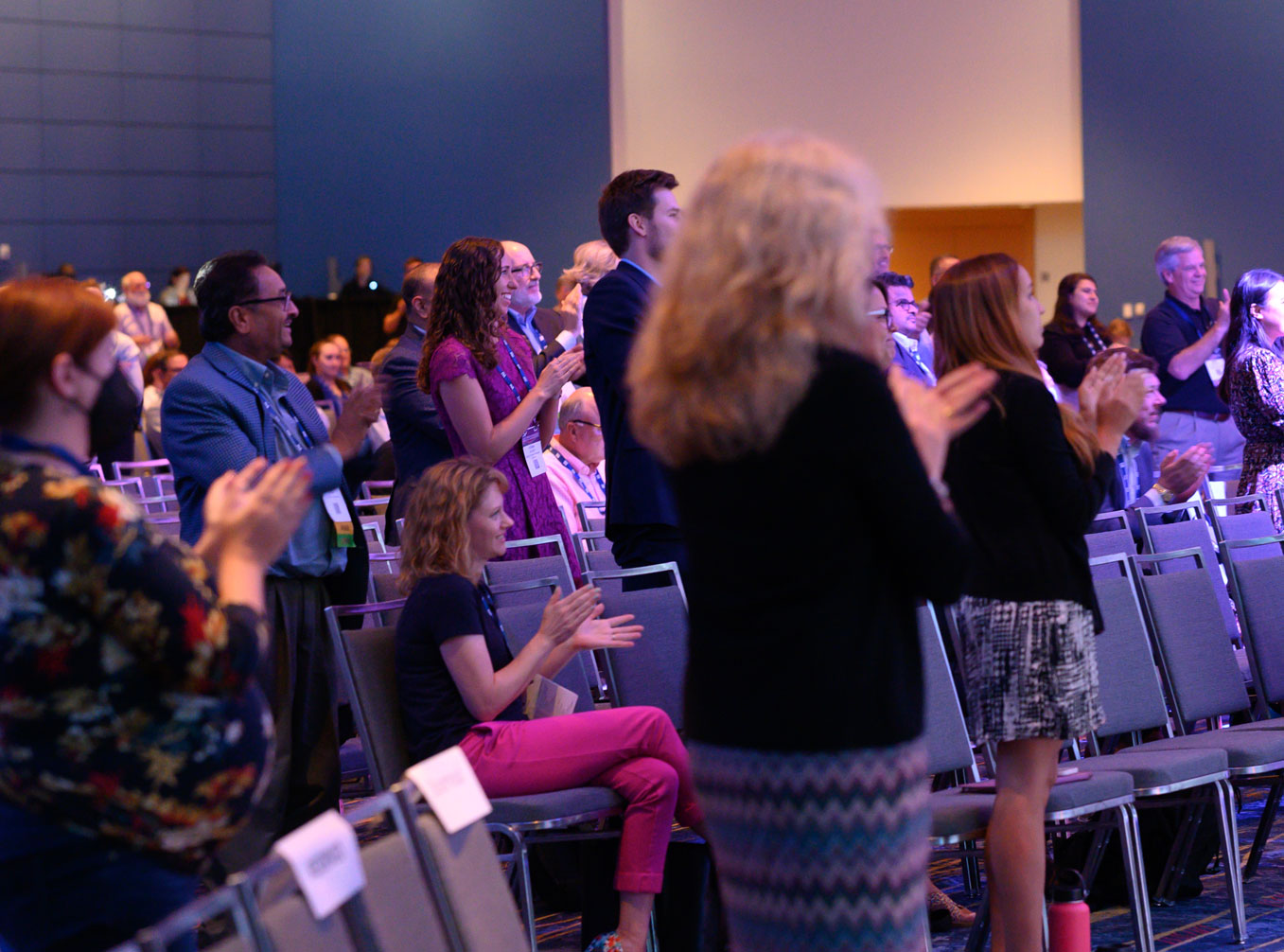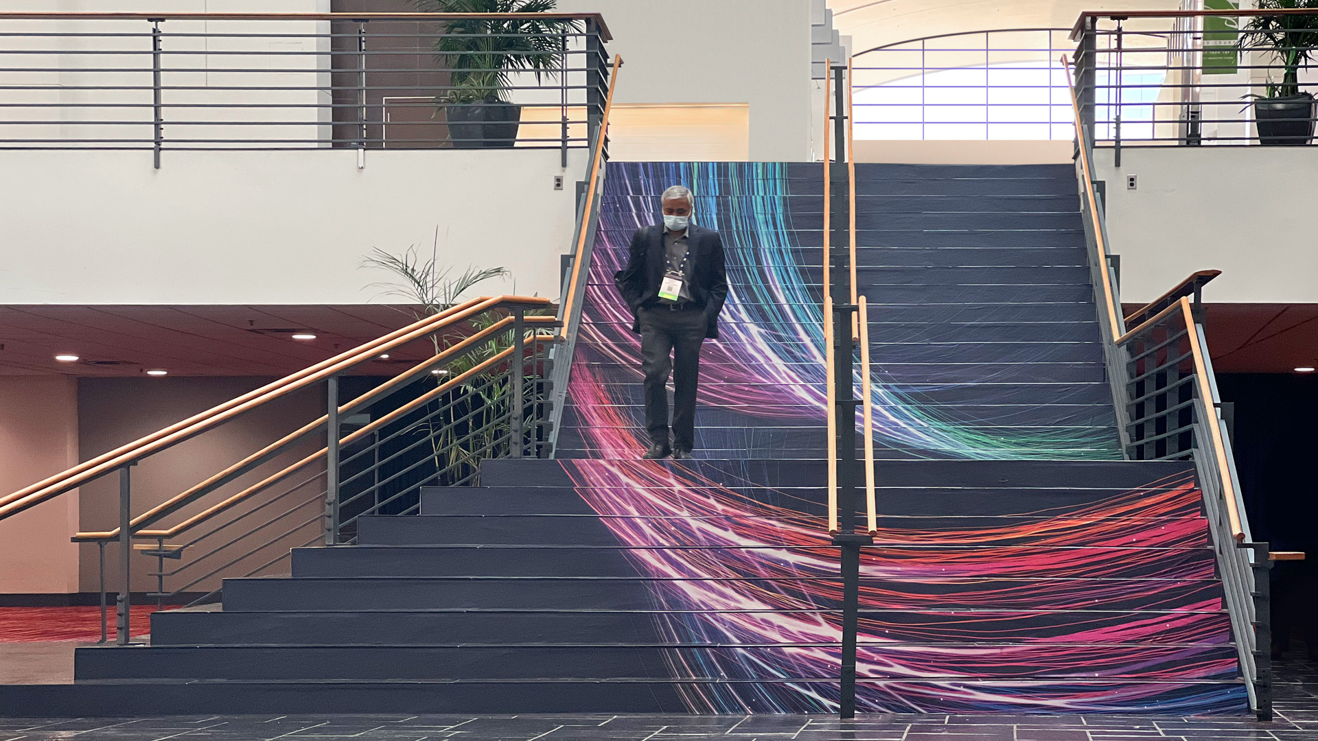 An animated loop of the event branding as well as backdrops for speaker presentations was created for the 48-foot wide display in the plenary session hall.