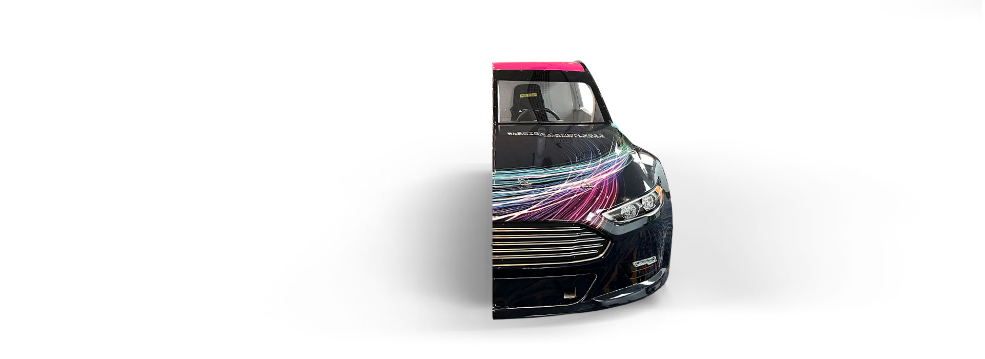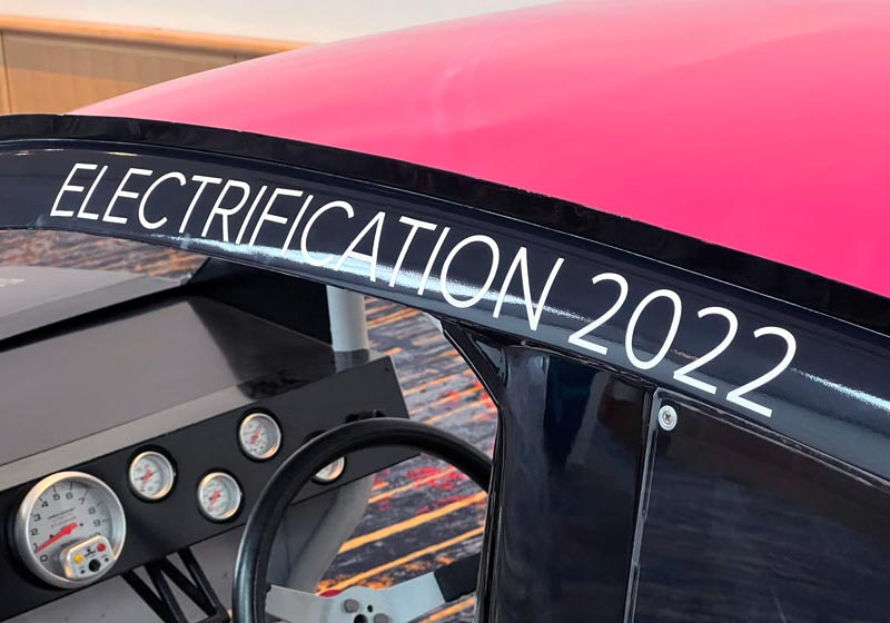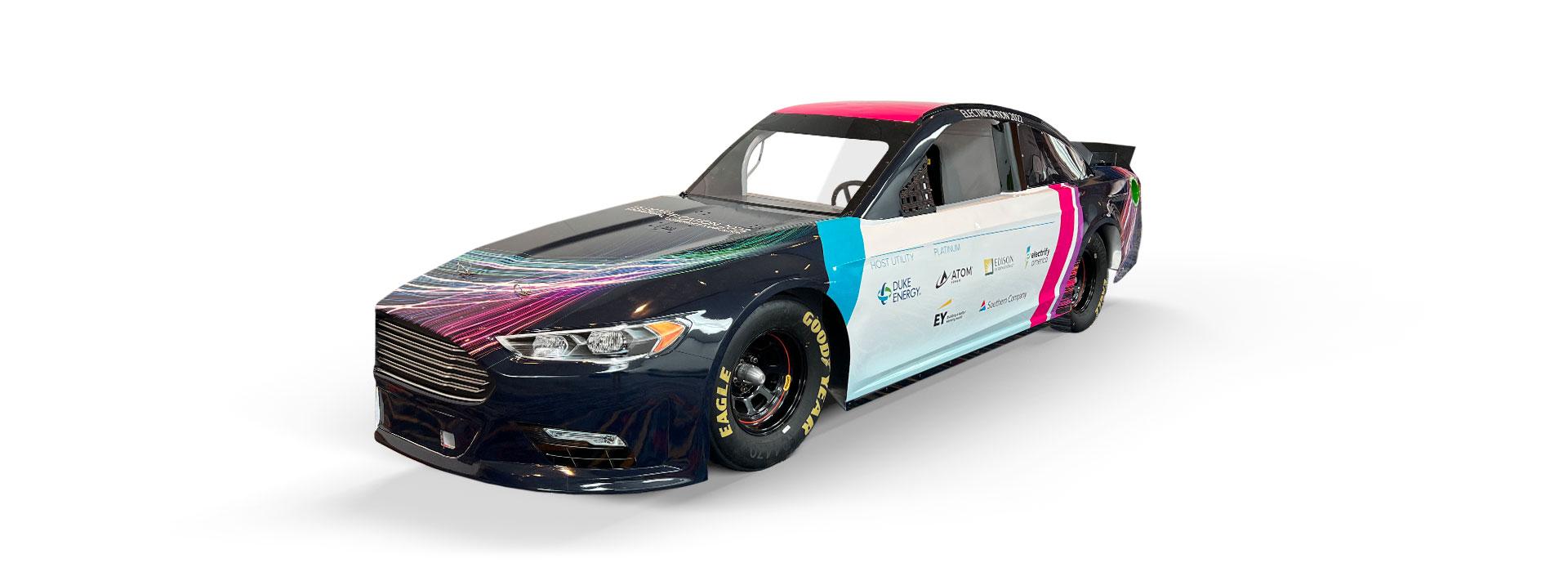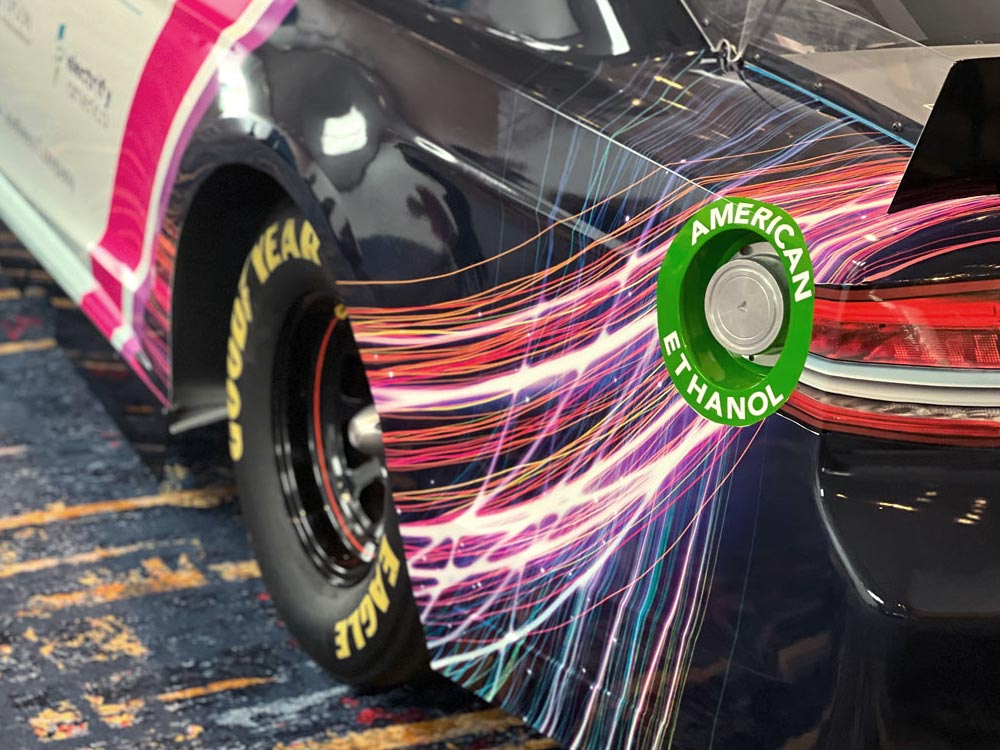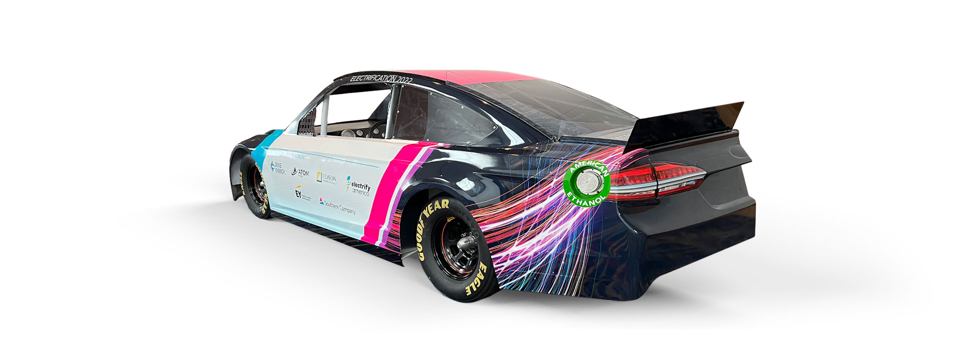 One of our favorite elements of the NASCAR party location was the photo booth—an actual half of a NASCAR that we wrapped in our Electrification branding.