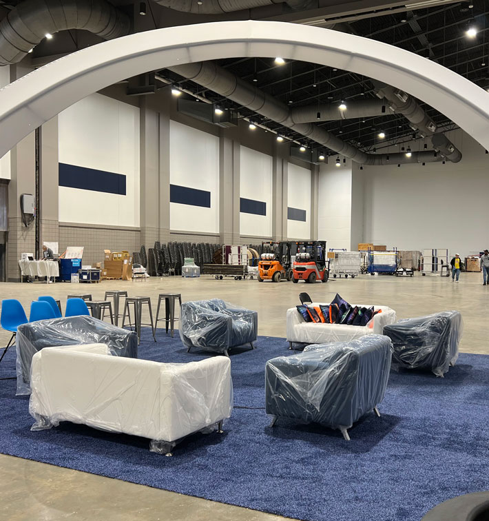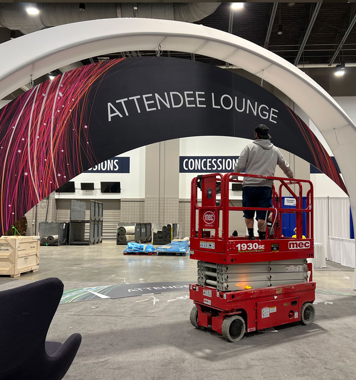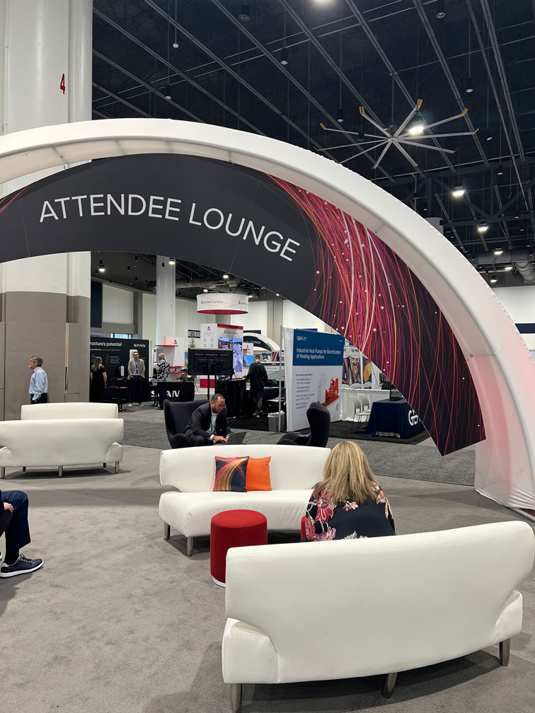 First stop was registration located right in front of the expo hall for easy access. Inside Expo we created lounges for people to rest and recharge in between the various exhibitor booths.