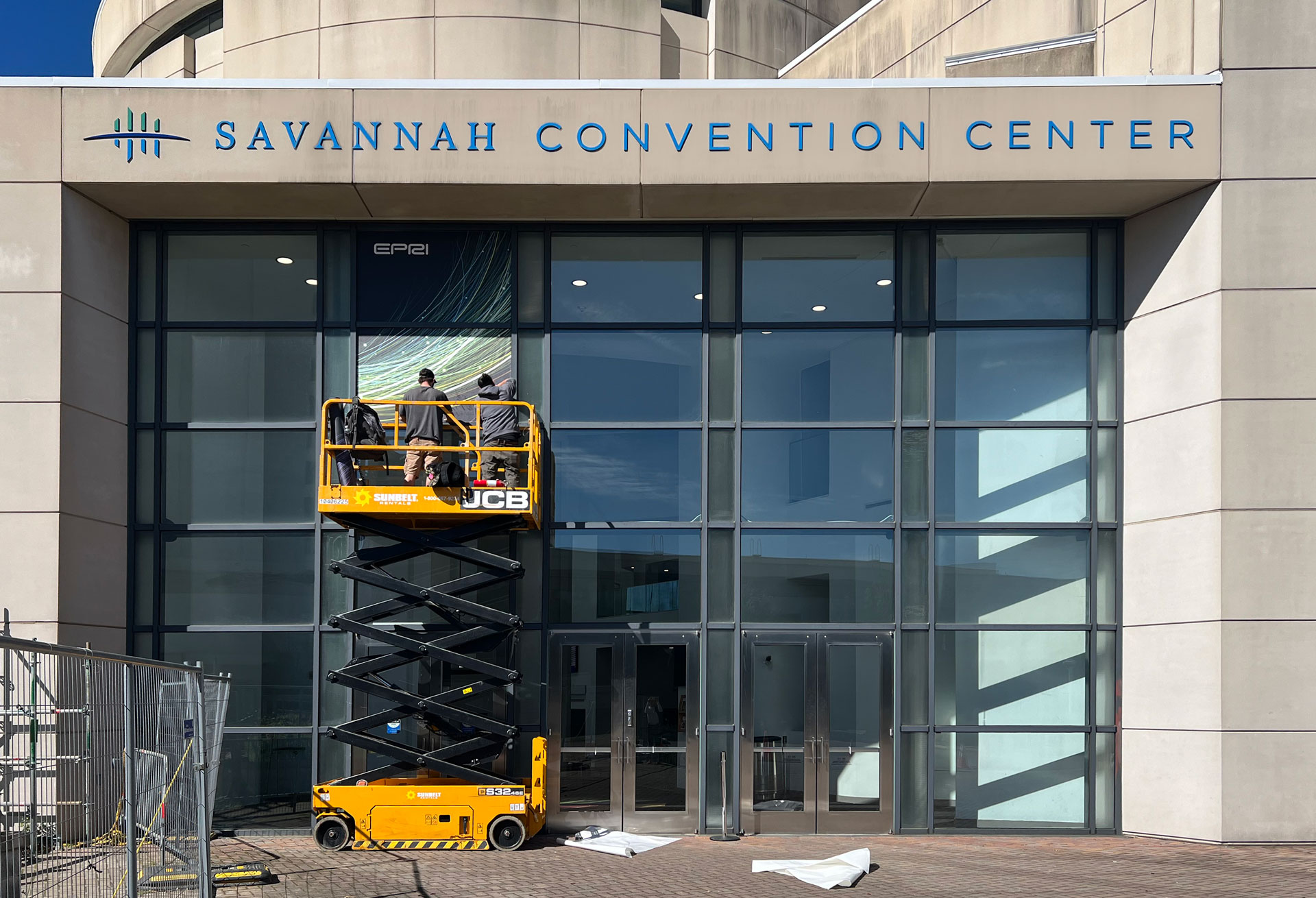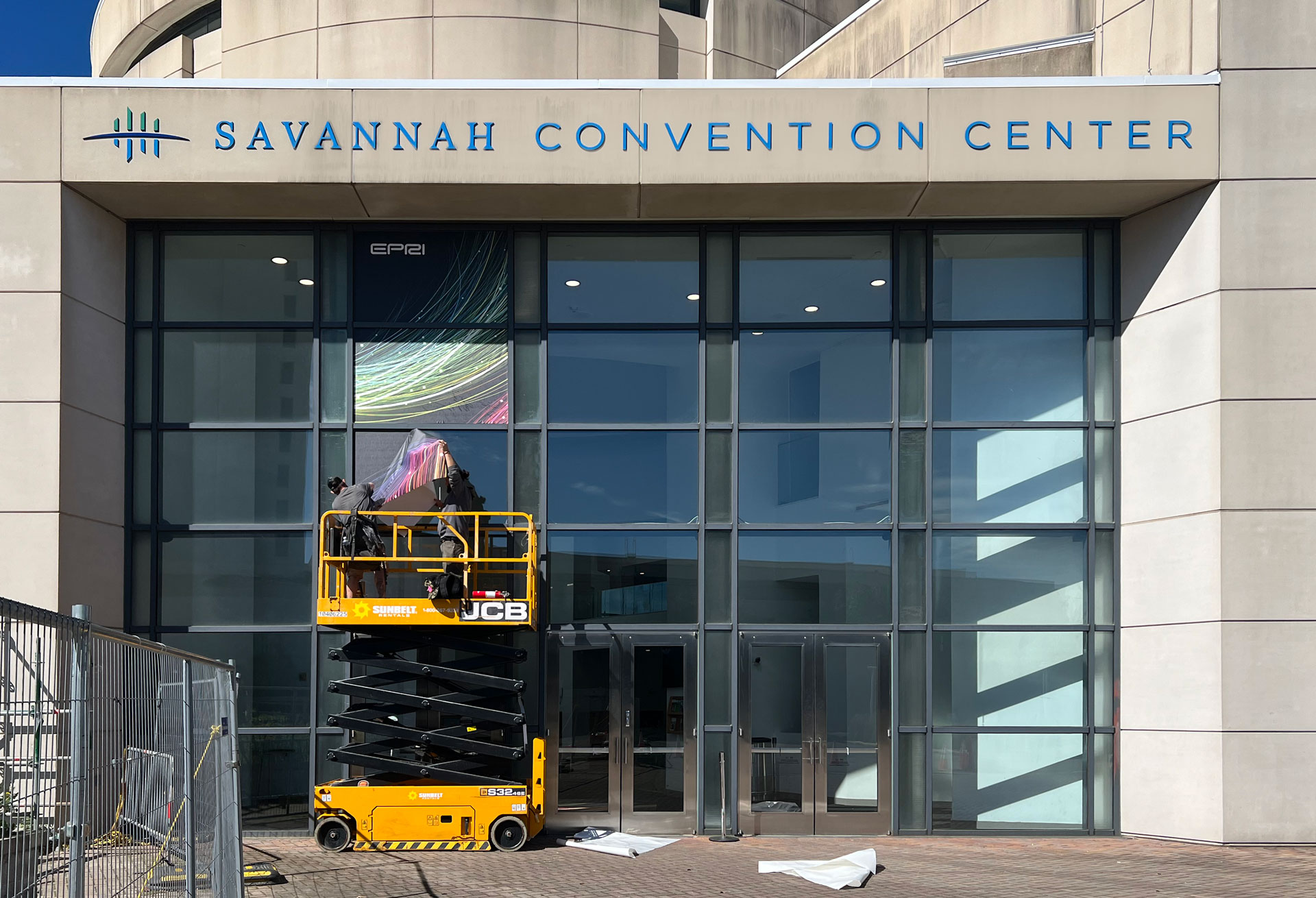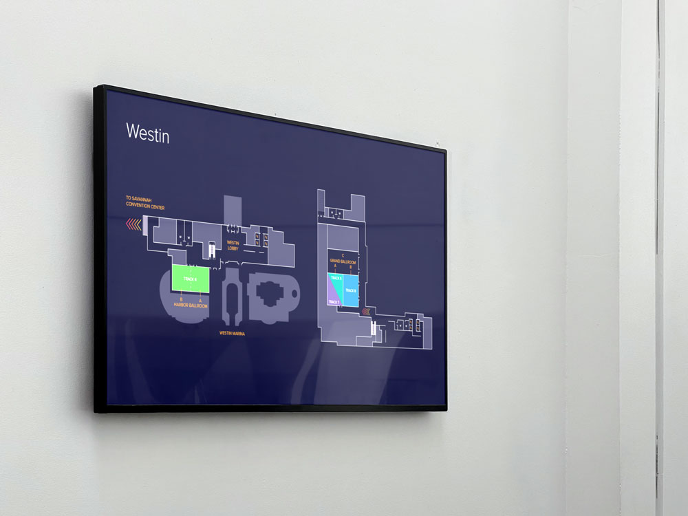 All roads led to the main entrance at the Savannah Convention Center. Depending on what side of the river attendees or exhibitors stayed, the way to the conference was by ferry, via trolley or on foot. This required a variety of wayfinding signage to make their paths easy and clear.