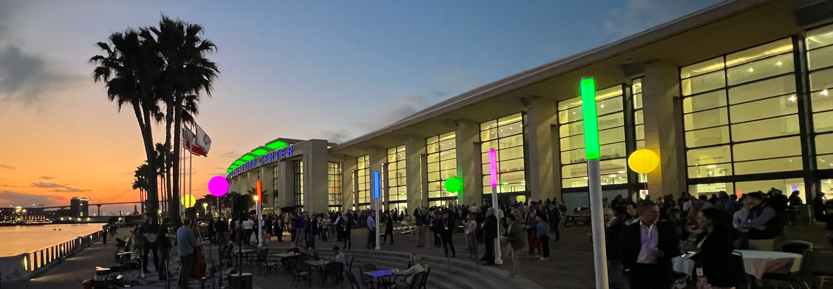 A convention just isn’t the same without a little fun. The opening reception was held in the expo hall. The second day featured an oyster bash and southern food complete with branded games. The closing party was held at a rooftop bar across the river. A slide transported people from the roof top to the level below.