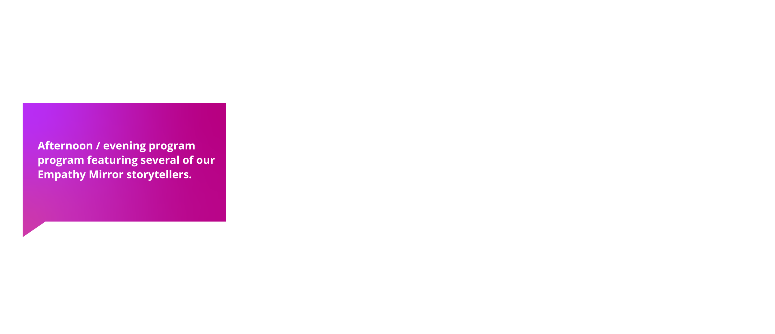The second Storyteller Summit brought together storytellers, filmmakers, and producers for a day of courageous conversation and reflective practice all centered around the power of personal story to build empathy and connection. The event continued the bold visual identity established at the inaugural summit.