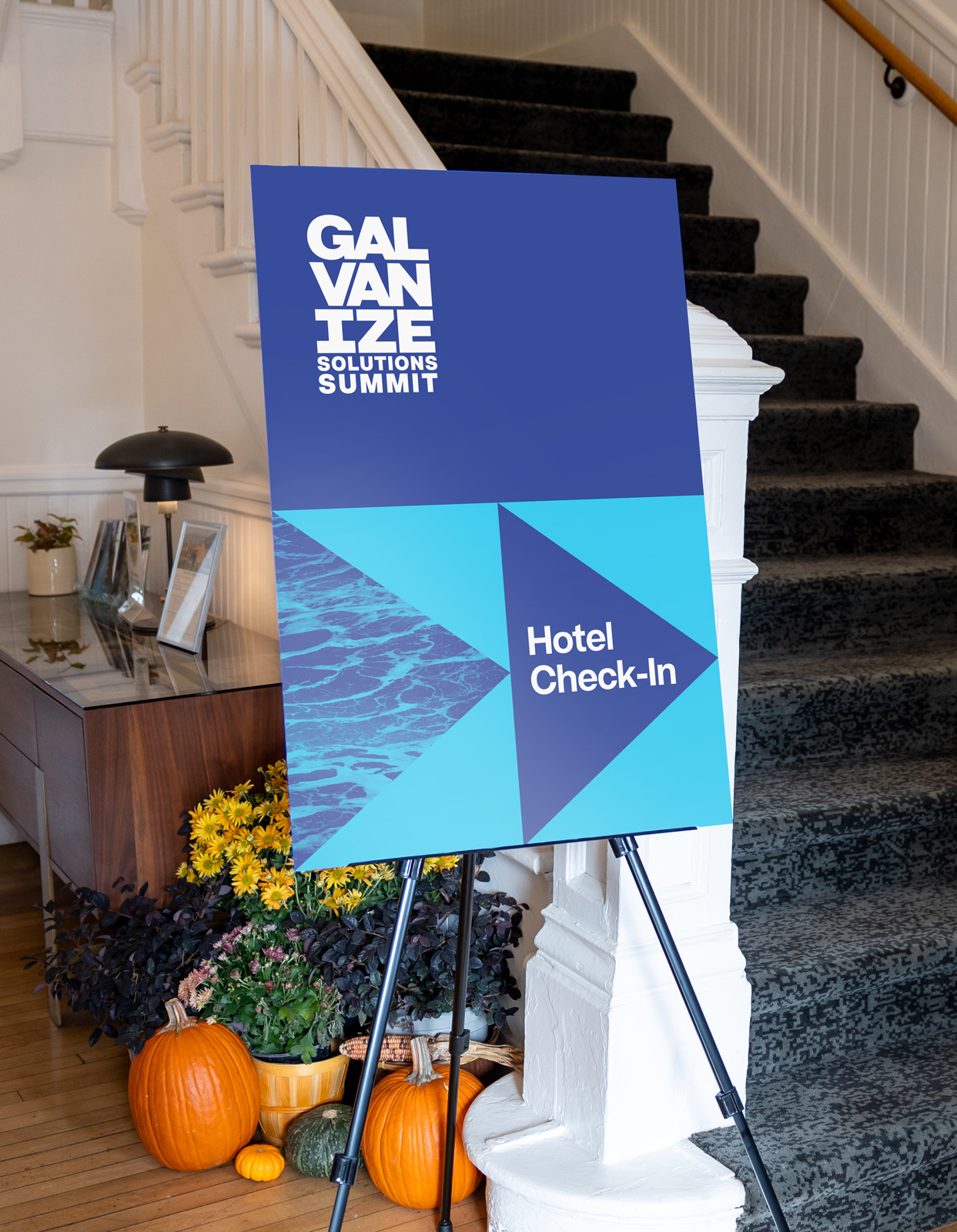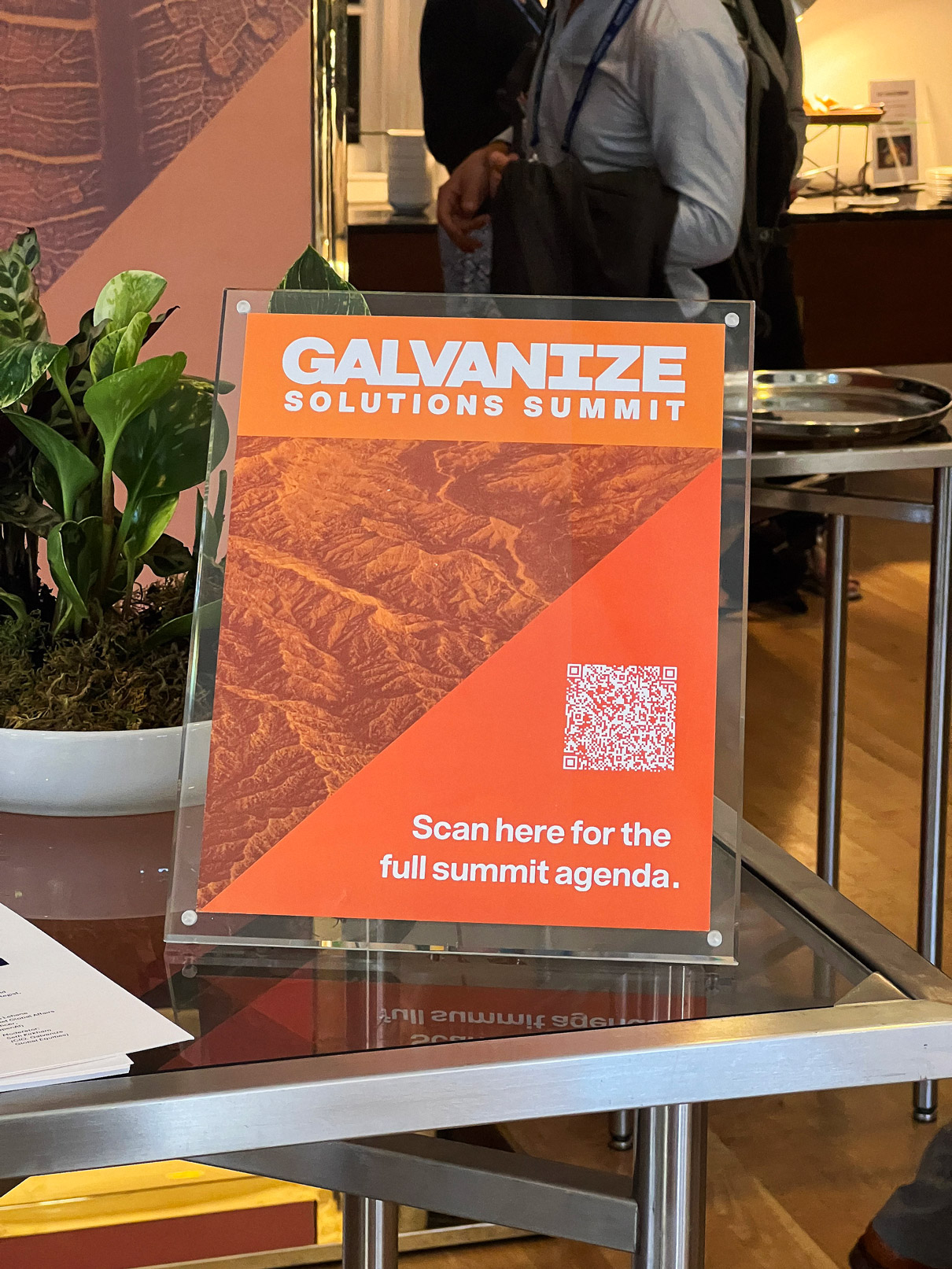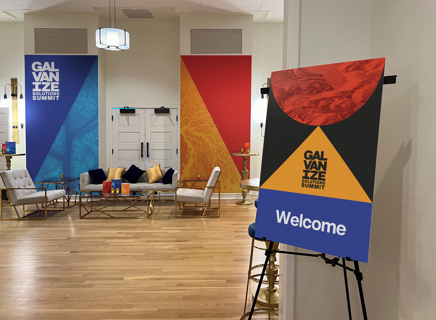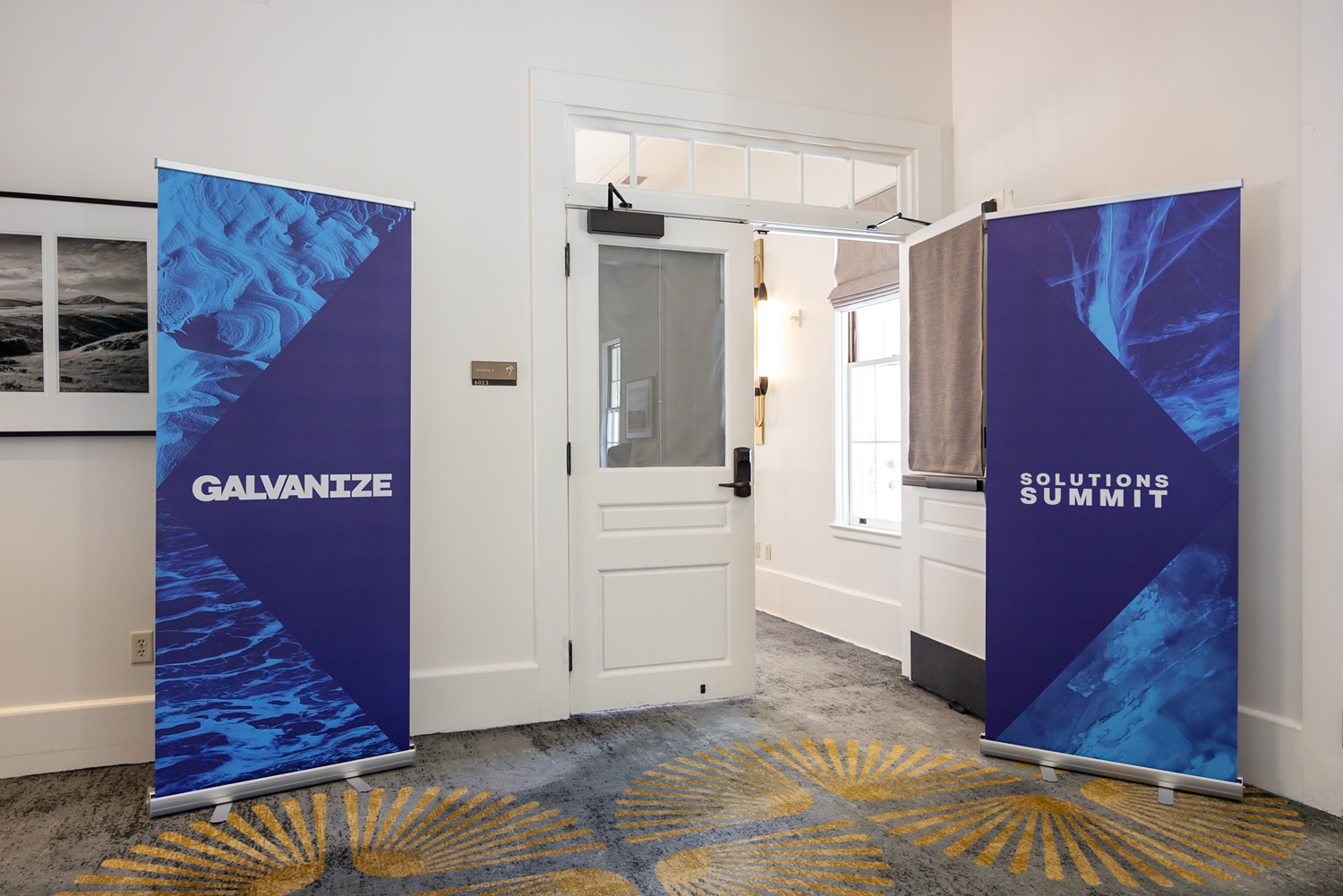 The 2025 Summit debuted a refined Galvanize identity. Earlier in the year, the organization had updated its visual language, trading bold primaries for a softer, more muted palette, transitioning to a horizontal logotype, and introducing new nature imagery throughout.
