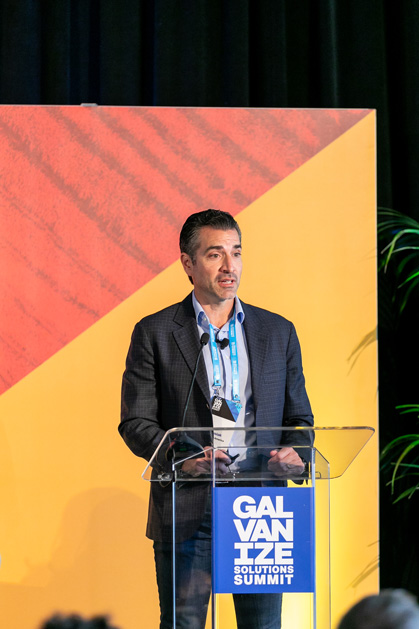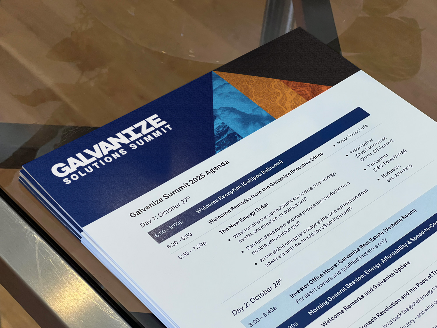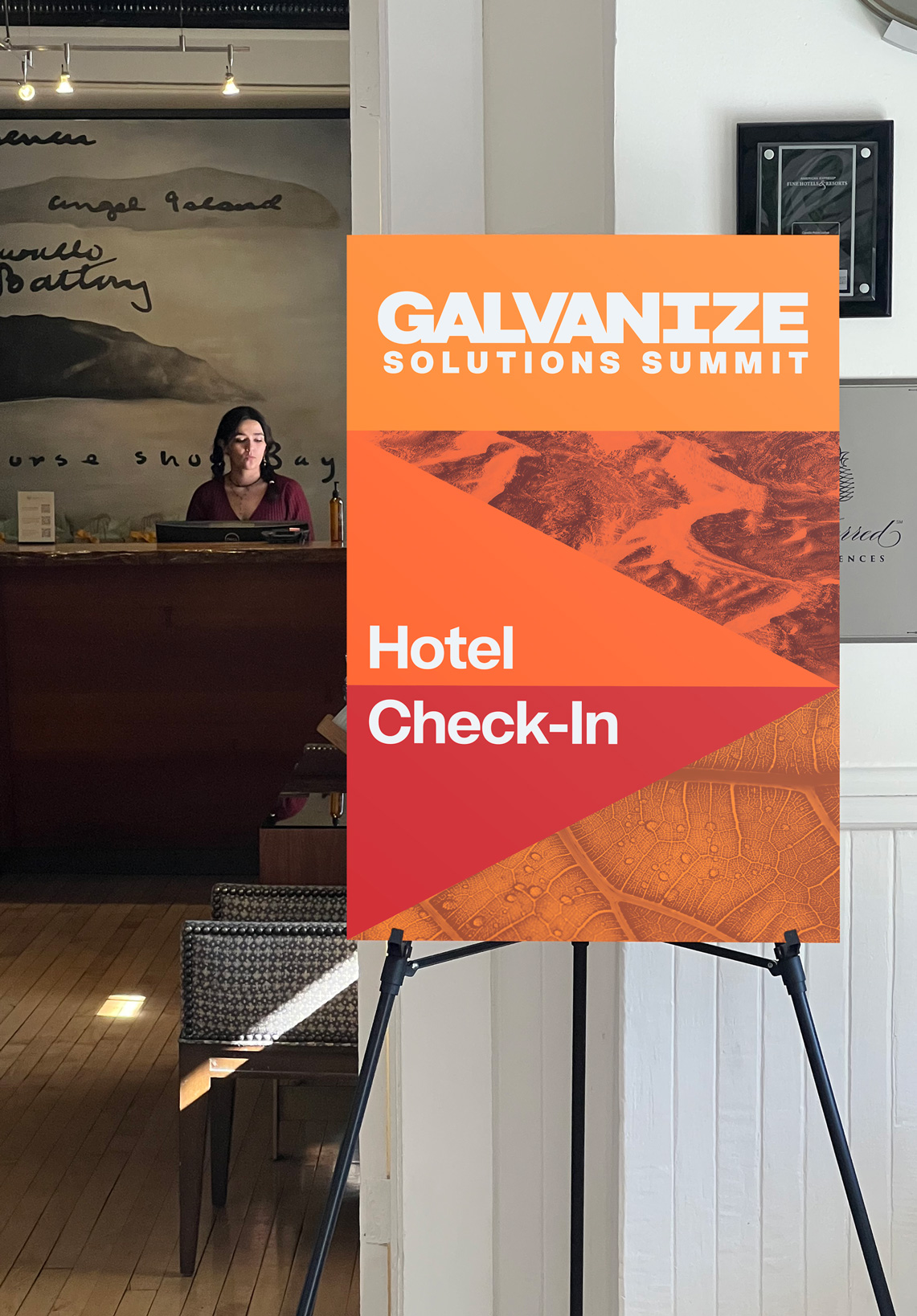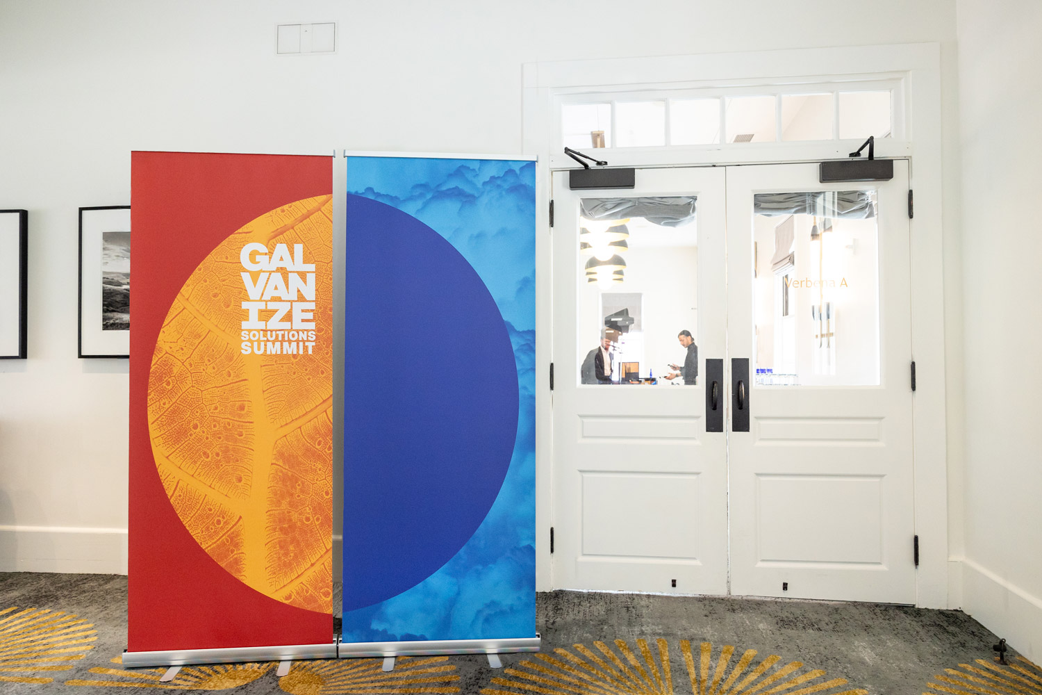 The 2025 Summit debuted a refined Galvanize identity. Earlier in the year, the organization had updated its visual language, trading bold primaries for a softer, more muted palette, transitioning to a horizontal logotype, and introducing new nature imagery throughout.