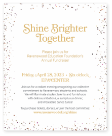 The Ravenswood Education Foundation (REF) hosted a sparkling event themed, “Shine Brighter Together,” in recognition of the community’s collective commitment to Ravenswood students and schools. Thanks to a huge matching sponsor gift, the event raised over a million dollars for the district in one night. With drinks and dinner under the stars, live student music, and an art gallery filled with beautiful student creations, the evening culminated in a glittering dance party that capped off the night in style.