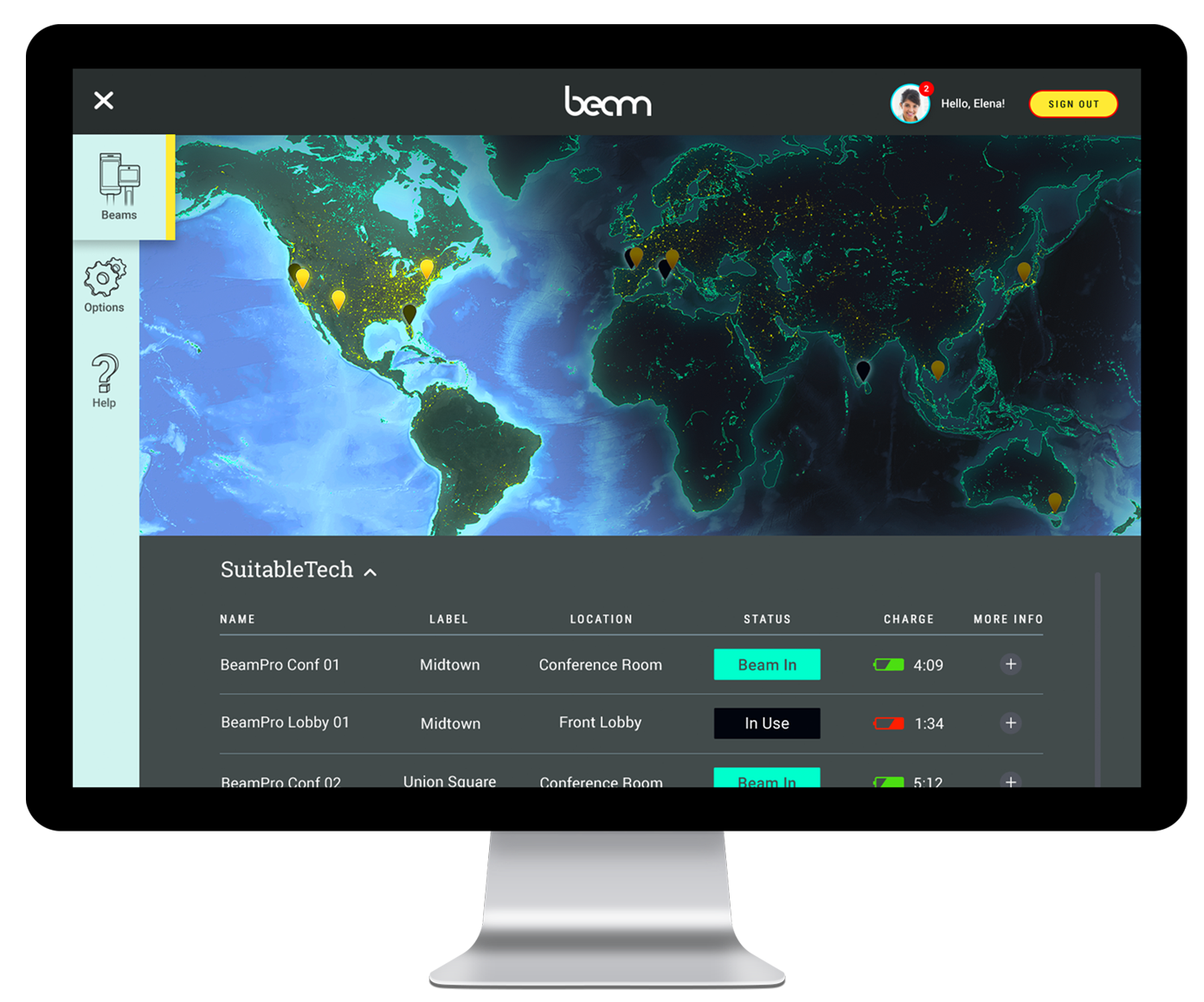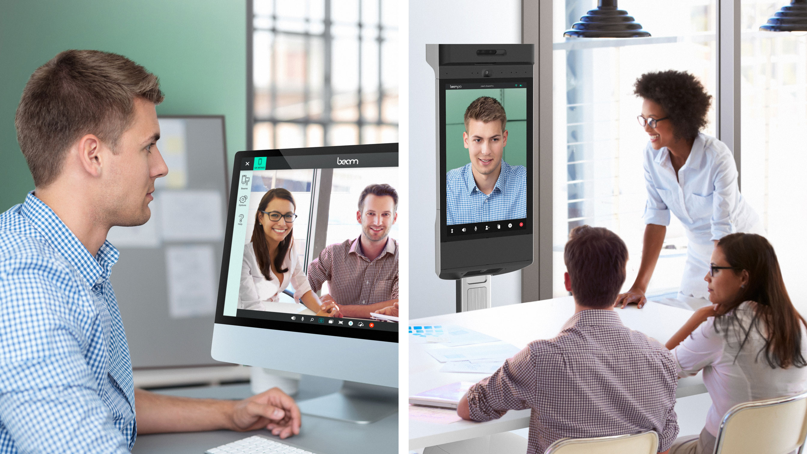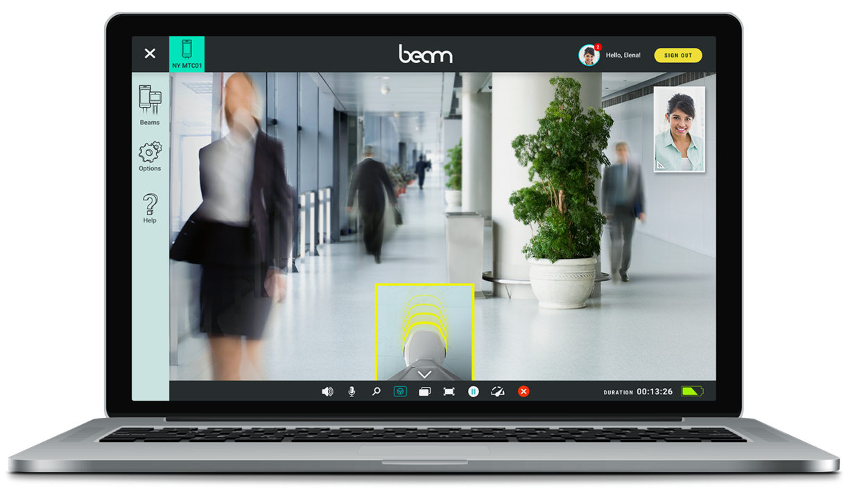 Beam allows you to feel like you’re in there in the room no matter where you actually are in the world. It provides authentic eye-to-eye connection instantly across distance, allowing you to seamlessly move within the space and engage with people there in real time. It’s more than a video conference tool, it’s a mobile robot that you can operate to move within the space.